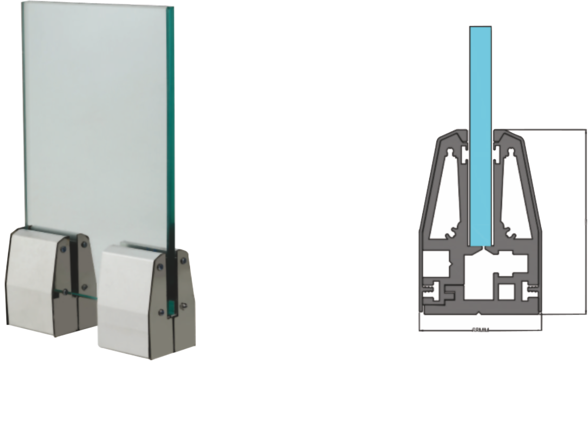 Group of portable inside dividers in Aluminium and glass with the sole capacity of division. Framework with 50 and 35 mm thickness and expelled Aluminium profiles intended to oblige wellbeing glass, glass and wood or glass/texture boards.